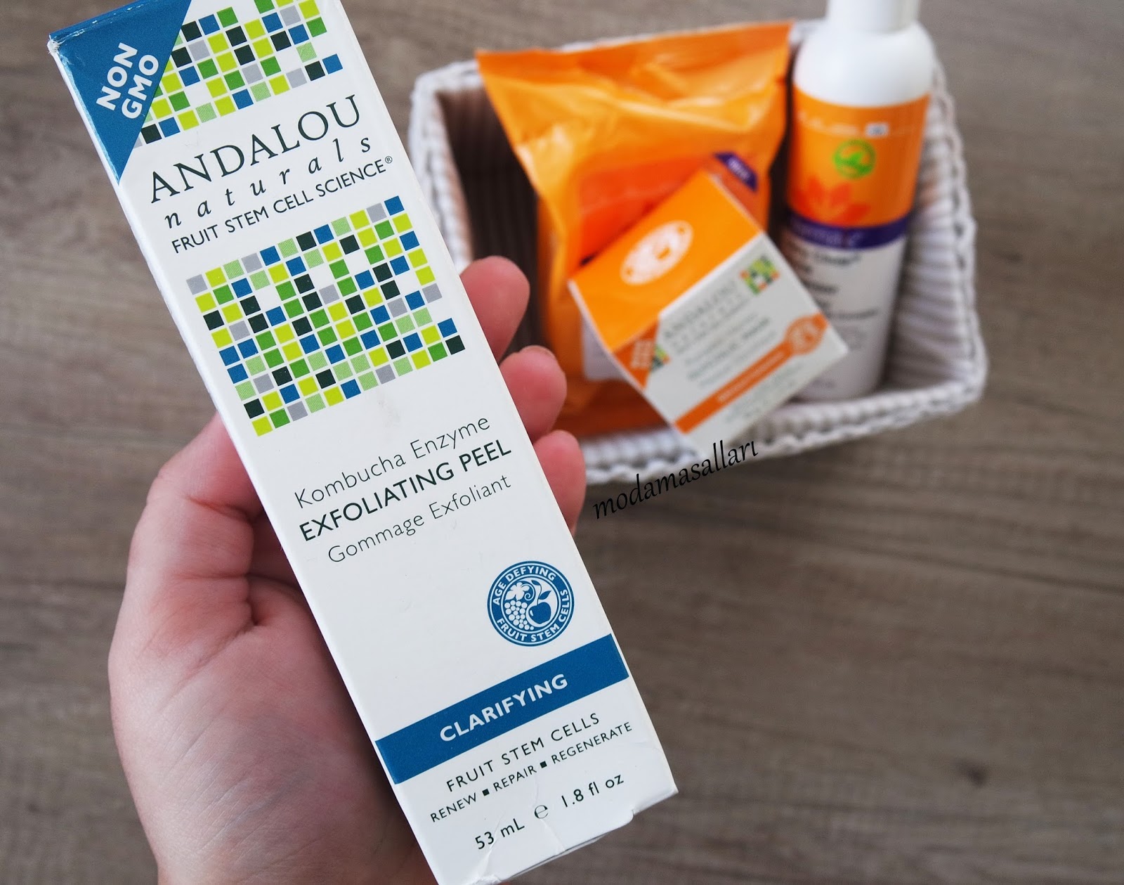 Andalou Kombucha Enzyme Exfoliating Peel; İçeriğinden anladığım kadarı ile Kombucha dediği şey bir tür greyfurt enzimi, Aktif ve yağlı ciltler için önerilmiş bir ürün. Tanecik içermiyor, orta akışkanlıkta şeffaf, portakal gibi kokan, klasik maske gibi hafta 1-2 defa yüze sürüp, bekletip, durulayarak kullanılacak bir ürün.